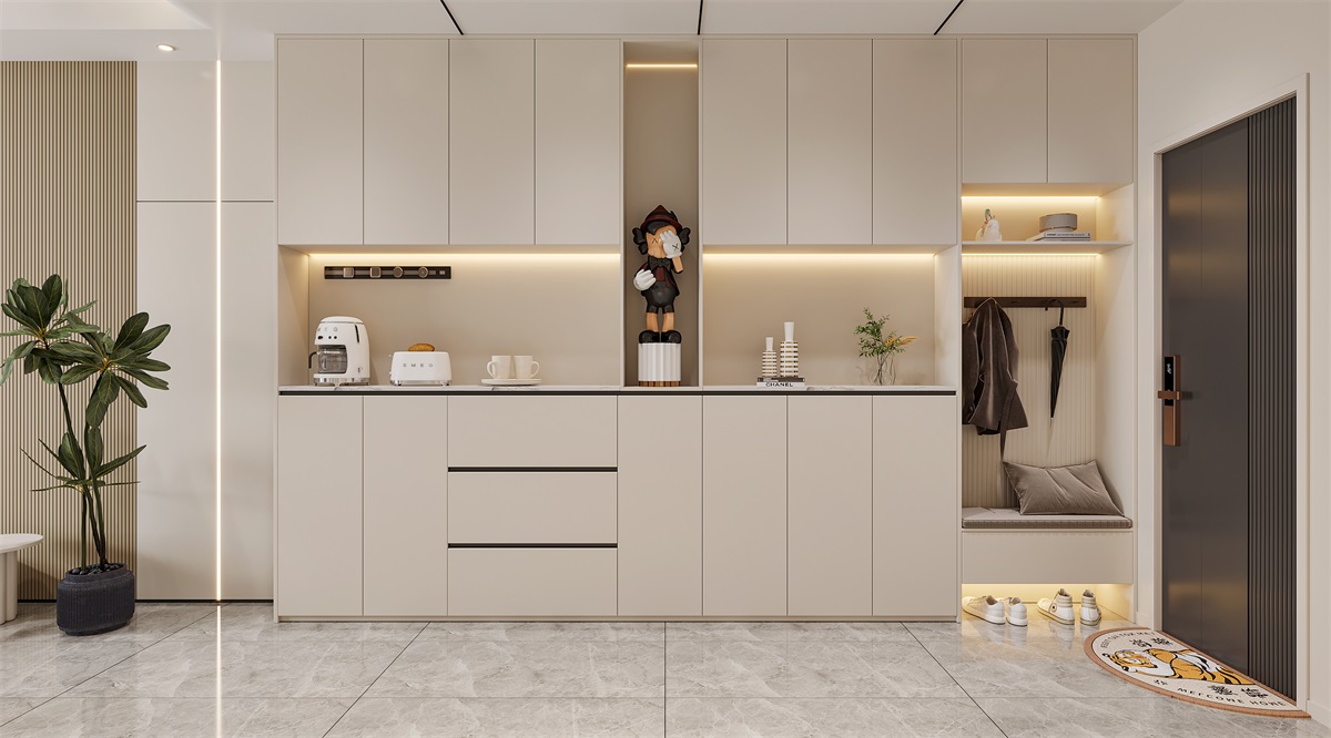 表面采用進(jìn)口pp膜,外觀、顏色、質(zhì)感可媲美傳統(tǒng)建材,花色尺寸均可定制; 吊頂、墻面、柜體、室內(nèi)門(mén)一體成色,整體成型,無(wú)縫拼裝,全屋整裝可實(shí)現(xiàn)空間感,整體感,高級(jí)感。